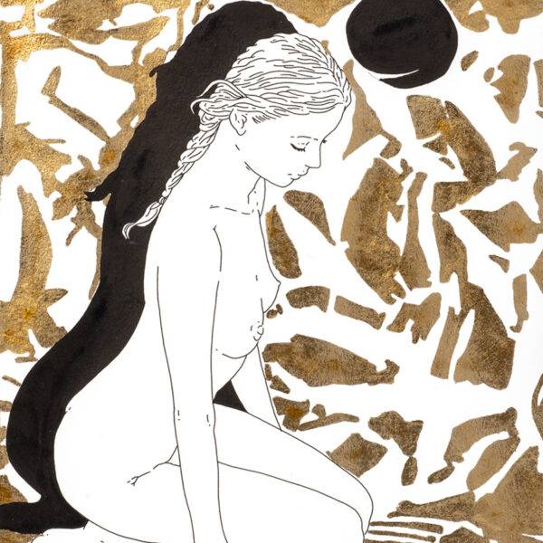 Original: Pen and metal goldleaf on paper