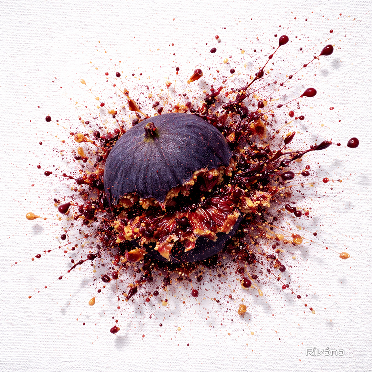 Through high-speed photographic techniques, the work reveals details normally imperceptible to the human eye: suspended fragments, varied textures, and the subtle dynamics of motion arrested in time. The composition emphasizes asymmetry and unpredictability, rejecting decorative balance in favor of raw physical truth.